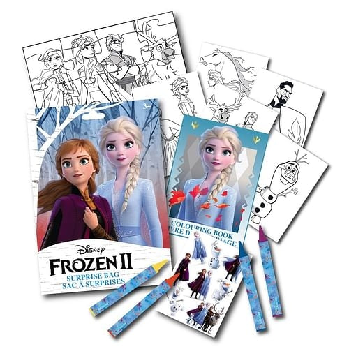 Ideal for a Disney Frozen II birthday party, comes this fun party favor kit. Includes 24 coloring pages, 1 coloring puzzle, 4 crayons, and 1 sticker sheet.