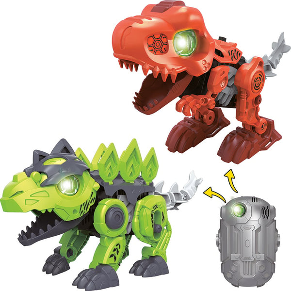 Roar into prehistoric fun with the Dino-Tech Build-It Kit from Flipo! Give your kids the opportunity to learn by assembling their own T-Rex or Stegosaurus – then when the building is complete, turn the battery-powered Dino on and watch the LED eyes light up and move, as they step, move their tail, and let out ferocious roars. Your child will be entertained and educated for hours on end with this exciting and challenging project. Available in Green Stegosaurus or Orange T-Rex styles. Each Dino requires two 1.5V AAA batteries (not included) and no tools are required for assembly. Perfect for young paleontologists ages 5 and up.
