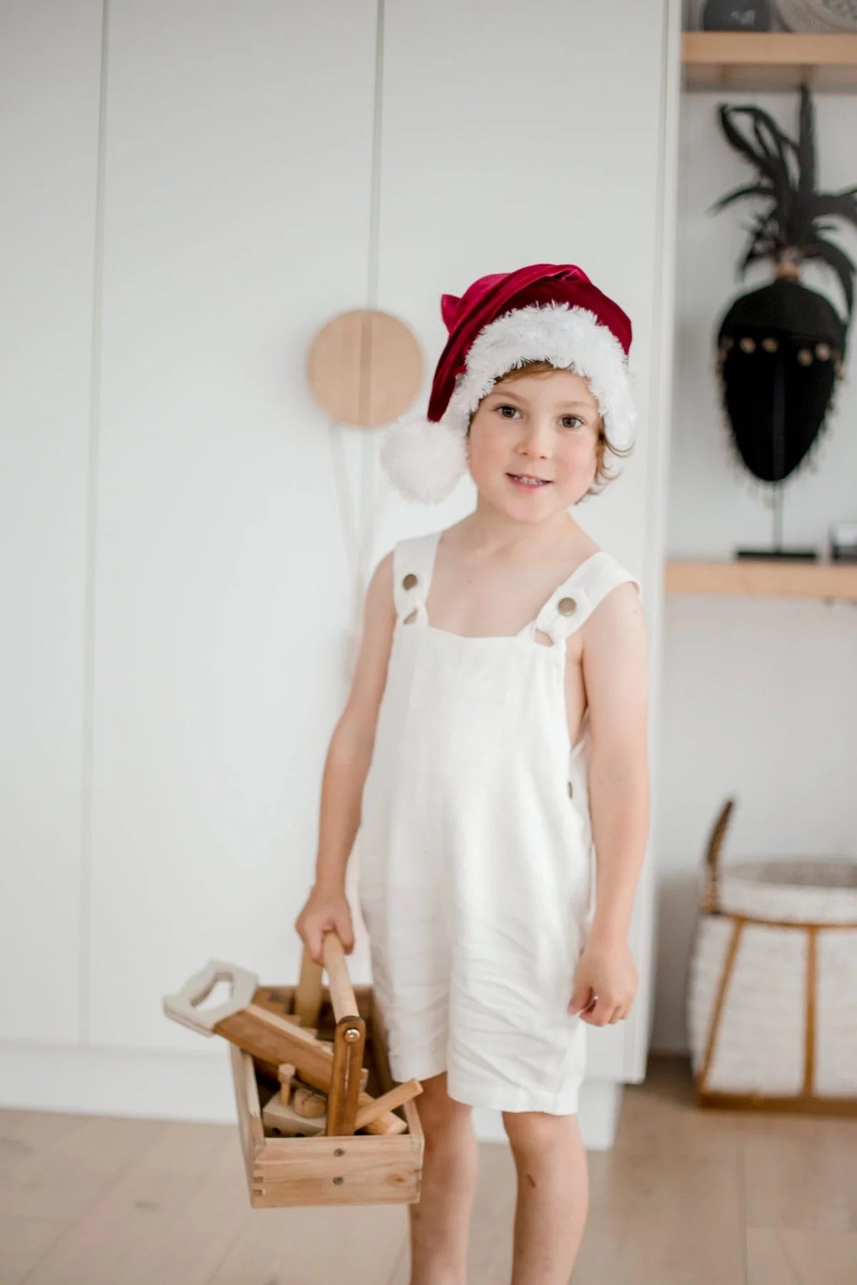 Small wooden carpenter set including screws, drivers, a hammer, spanner, nuts, bolts and a toolbox. All Qtoys are made out of plantation timber using non-toxic and child-safe materials.