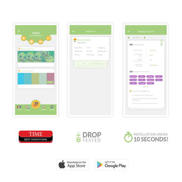 - APP & REPORT - Schedule, Manage, and Track your child’s lessons & progress throughout their educational journey. Use our free iOS or Android app for full content control and detailed progress reports including pronunciation scores.