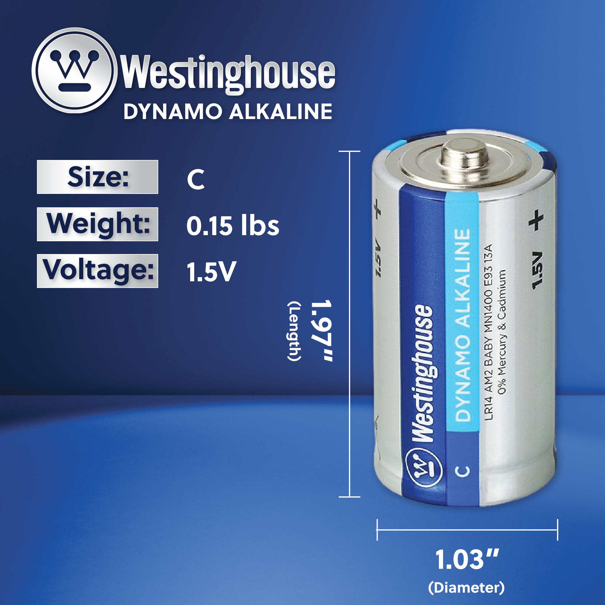 Westinghouse C Dynamo Alkaline Blister Pack of 2