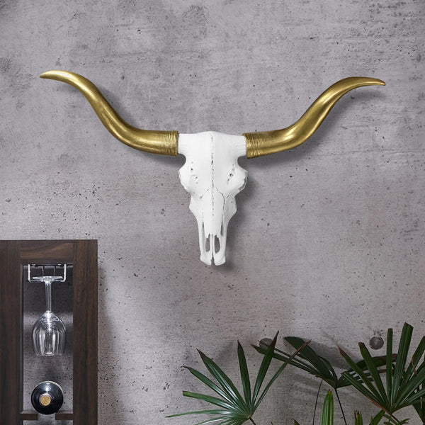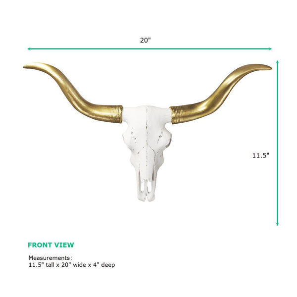 The Mini White + Gold Horn Faux Longhorn Skull was designed as a piece that reminds us of Texas and the American West. Animal decor that is animal-friendly and incredibly detailed, perfect for nurseries, kids rooms, or that small space lacking some nature or dimension.